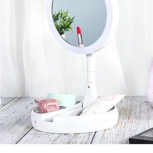 Dual Side Makeup Mirror With Light USB Table Mirror Desktop 10X Magnifying Women Vanity Mirror Cosmetic Mirror With Storage Box