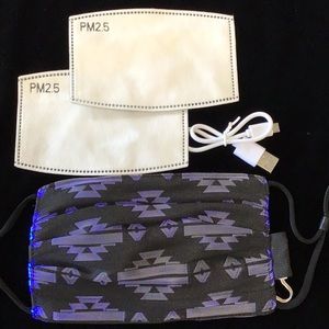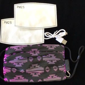 Light up your life in these dark times of the pandemic! Rechargeable LED mask. 7 different colors and 4 flash settings, 2 PM2.5 washable filters and charger cord is included.