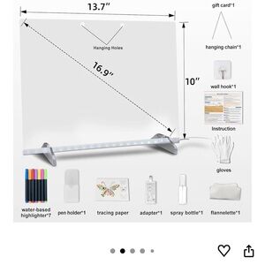 LED Note Board with Colors, 13.7"X10" 6 Modes & 8 Colors Acrylic Dry Erase Boards with Light, Include Adapter, Hanging Chain, Led Drawing Board for Kids with Stand,7 Markers, Spray Bottle