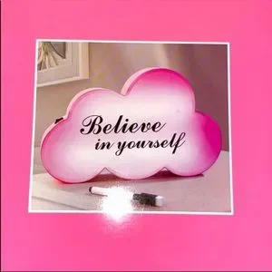 Cloud shape light up message box Leave a message or write a quote On and off switch Comes with a pen Uses 3 AAA batteries (not included) New in original package