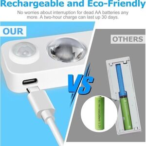 【Rechargeable Cabinet Light】:Built-in rechargeable battery that can be easily charged via USB cable (included). Provides lighting solution without the worry of constantly buying and replacing non-recyclable AAA batteries. When fully charged, it can be used for about 6 hours when it is on, and about 30 days when it is used as a motion sensing night light