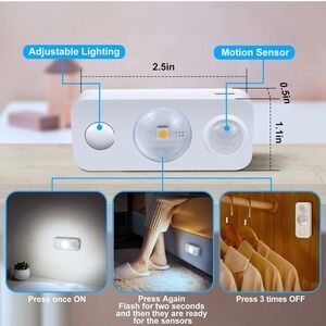 Motion Sensor Lighting】:This motion sensor puck lights is equipped with a sensitive light sensor, with motion sensing lighting function, sensing radius 10FT, sensing Angle 120 degrees. When these closet lights sense movement in the dark, they light up immediately and turn off automatically after 30 seconds of no movement. When there is strong light outside, the puck light will not be triggered by mistake