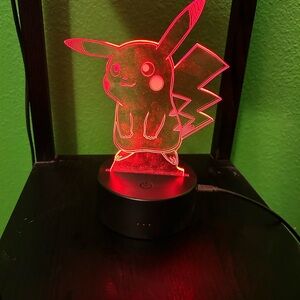 Cute LED night light featuring Pikachu. Multi color. Perfect for fans and collectors. Plug in or battery operated.