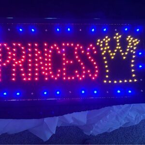 Brighten up your space with this vibrant LED Princess Wall Sign. Featuring a stunning display of red, blue, and yellow lights, it's perfect for adding a touch of magic to any room.