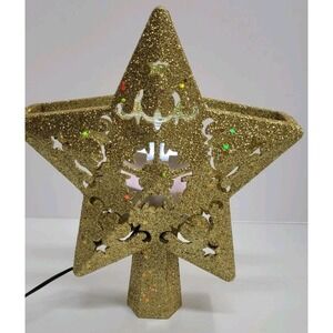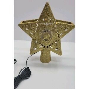 The LED Projector Christmas Tree Topper is a festive addition to any holiday celebration. This star-shaped topper features LED lights that create a warm and sparkling glow, perfect for adding a touch of magic to your Christmas tree. The gold color adds a touch of elegance, making it a beautiful focal point for your holiday decor.