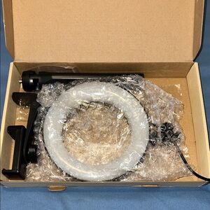 Enhance your photography with the LED Ring Light Kit. This tan-colored kit provides optimal lighting for stunning photos and videos.