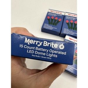 LED String Lights Battery Operated 15 Count Red Dome Merry Brite Ct LOT OF 4