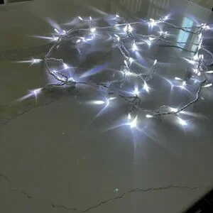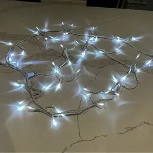 Illuminate your space with these vibrant blue LED string lights. Perfect for creating a cozy atmosphere.