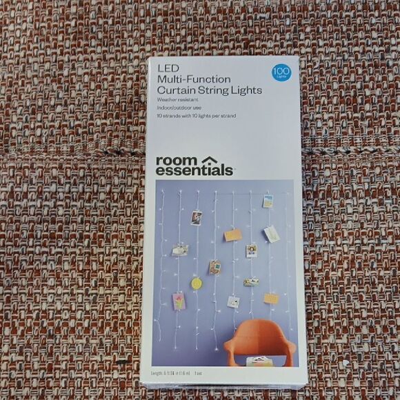 LED multi-function curtain string lights by Room Essentials. Features colorful designs for indoor and outdoor use. Plug In No Batteries Needed. 100 Lights With 25 Clips To Hang Up Your Photos And Anything Else You Choose To Display.