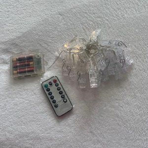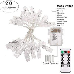 20 LED String Lights Photo Clips with Remote. 7.2 ft. long string lights great for Dorm, Wedding, Party, Christmas, Home Decor, Hanging Photos, Cards or Tapestry. Warm white color lights with remote to dim lights and change the setting.