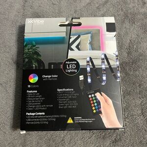 LED light strip, brand new in box. Adjustable LED lighting, 39 inch length, changes colors with remote