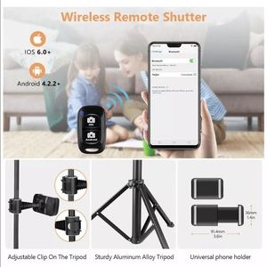 comes with tripod stand, remote, and 2 phone holders