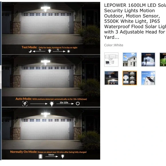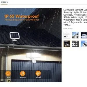 LEPOWER 1600LM LED Solar Security Lights Motion Outdoor, Motion Sensor, 5500K White Light, IP65 Waterproof Flood Solar Light with 3 Adjustable Head for Yard, Garage.