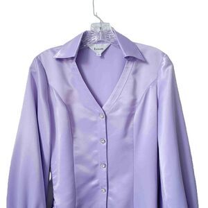 LEDAíR Lilac Long Sleeve V Neck Button Front Draped Hem Dress Blouse Medium
