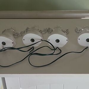 Enchanting set of four LED angel string lights featuring adorable translucent angel figures that illuminate in vibrant orange, yellow, blue, and pink hues. Each angel features metallic accents and glowing eyes, perfect for creating a festive holidsy atmosphere. Connected by black wiring for easy setup and display. You can change out the power supply and make the string shorter but the current power supply adds approximarely an additional 6ft. Indoor use only. Have two sets.