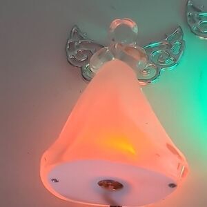 Enchanting set of four LED angel string lights featuring adorable translucent angel figures that illuminate in vibrant orange, yellow, blue, and pink hues. Each angel features metallic accents and glowing eyes, perfect for creating a festive holidsy atmosphere. Connected by black wiring for easy setup and display. You can change out the power supply and make the string shorter but the current power supply adds approximarely an additional 6ft. Indoor use only. Have two sets.