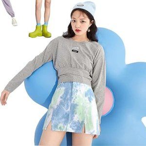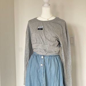 LEDiN Plain Ruched Double-Layer T-Shirt