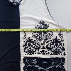 LEE ANDERSEN Lace Color-Block Dress Jersey Knit Sleeveless Black-Ivory Tank Size XL