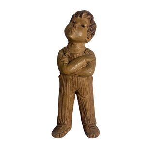 Lee Bortin Original Signed Clay Sculpture Boy w/ Crossed Arms & Overalls - 9"
