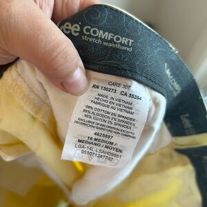 Pre owned excellent condition. Worn once or twice. Yellow Bermuda shorts with elastic waist band. WOMENS size 16.