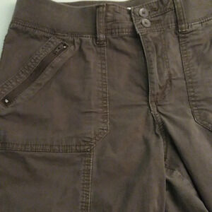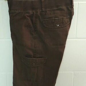 LEE EASY FIT CAPRI CARGO PANTS WITH TAB CUFF HEM, SOFT JERSEY KNIT ELASTIC WAIST.WITH BELT LOOPS. BROWN