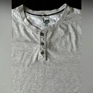 LEE Men’s 3 Button Henley Short Sleeve Shirt Size 2XL Light Gray Heather