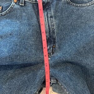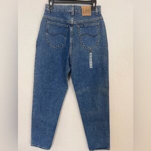 These vintage Lee Mom Jeans are a must-have for any fashion-forward woman. The relaxed fit and high-rise waist make them comfortable and flattering for any body type. The 5-pocket design provides ample storage space for all your essentials. Crafted from 100% cotton denim, these jeans are easy to care for and have a medium wash that adds a touch of distressed detailing. The zip and button closure, as well as the Lee logo accents, give these jeans a Y2K Mom Jeans vibe that is perfect for any hipster or bohemian outfit. With a waist size of approximately 30 inches and an inseam of 31 inches, these jeans are a size 13M (equivalent to US 10-12) and are perfect for any season.