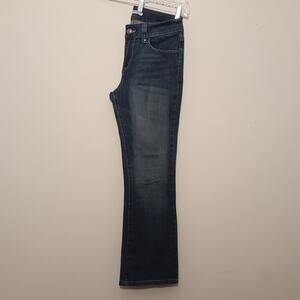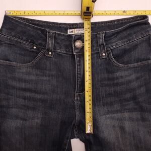 LEE PERFECT FIT womens jeans 10 blue mid rise boot cut stretch denim button flap back pockets