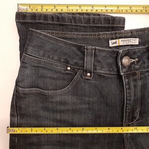 LEE PERFECT FIT womens jeans 10 blue mid rise boot cut stretch denim button flap