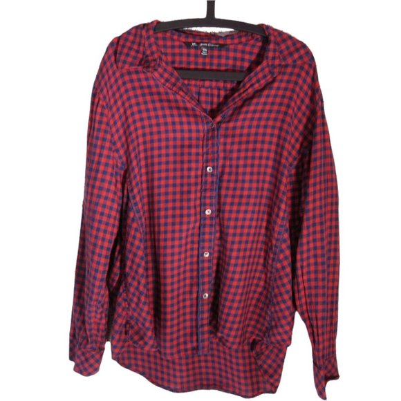 LEE RIDERS Shape Illusions Red & Navy Plaid Button Up Casual Shirt | Plus XXL