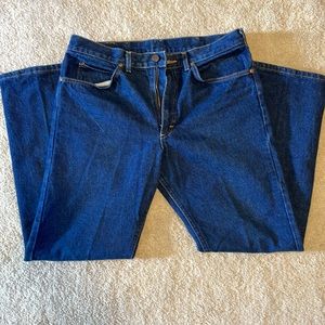 Vintage pair of lee riders, heavy beautiful blue denim, made in U.SA. Union stamped. 36x32 but run more like a 35 in the waist