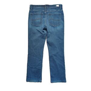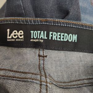 LEE Total Freedom Sz 12 Women's Mid Rise Solid Straight Leg Stretch Jeans with comfort elastic waistband. 34" waist at rise, 10" rise, 28" inseam. Size and material tag has been removed. Size is based on Lee jeans size chart. Refer to actual measurements for fit. Compare to $60 new!