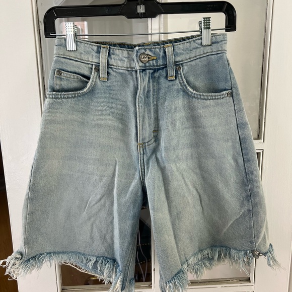 Casual and chic denim shorts. Features a frayed hem. Ideal for everyday wear.