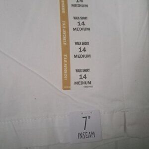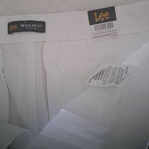 * # 389 * Brand: Lee Regular fit, mid rise, Legendary style * Fabric type: 98% Cotton 2% Spandex * Closure type: Button zipper * Mid rise, regular fit walk shorts * Two slant pockets 2 welt pockets in back * Size: 14 medium: Rise10.5 inches, leg opening 21.5 inches, inseam: Medium 7 inches waist: 33.5- 34.5", Hip: 42-43", * Legendary looks good on you!