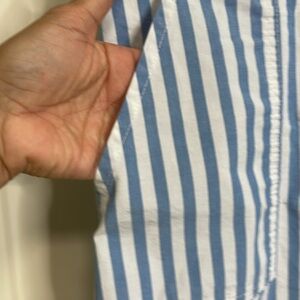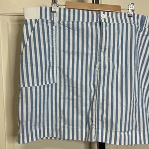 LEE Women’s Skort Blue White Stripe Mid Rise Comfort WaistBand MIDI Size 22M