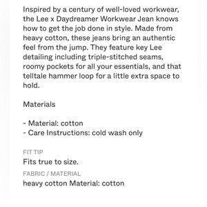 LEE X DAYDREAMER Carpenter WORKWEAR PANT in white. 31 NWT