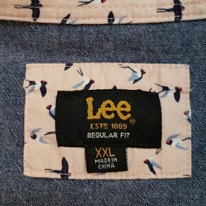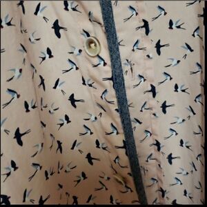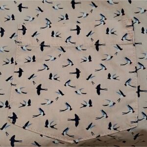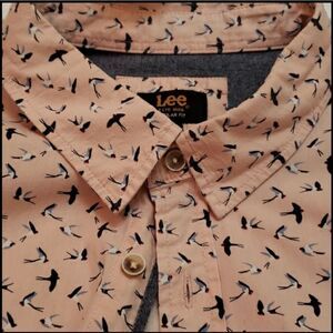 Casual pink Lee shirt with blue birds. Excellent pre-owned condition, no flaws or stains. True color light pink.