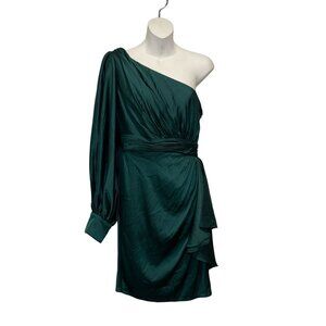 LEENA For Mac Duggal Emerald One-Shoulder Satin Ruffle Cocktail Dress Size 6 Wom