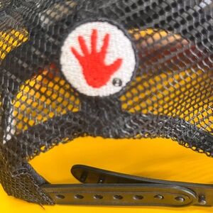 This is from Lefthand Brewery in Longmont Colorado. It is an AWESOME place. I love this hat but it is too tall for my face. It is the sticking that sticks up. Really cool. And I am left-handed. Like new I really just tried this on and wore it for a little bit.