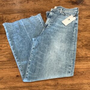 With its ultra high-rise waist and classic wide-leg, Jo is made for high-end styling. Crafted from our latest Left Hand Denim, featuring a reverse weave and ultra-soft feel to create your most comfortable jeans yet. Finished in a casual, light wash with raw hem detailing and fading at the knee, they will be the perfect denim you can slip on. 92% Cotton, 6% Polyester, 2% Spandex