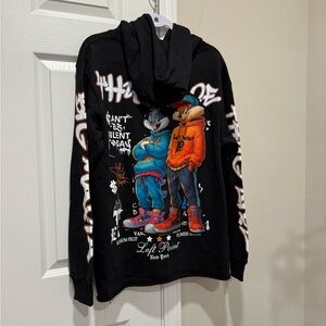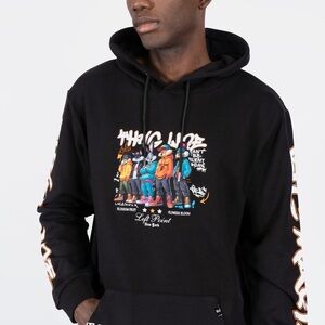 LEFT POINT Black Graphic Hoodie with Colorful Design Sz M
