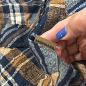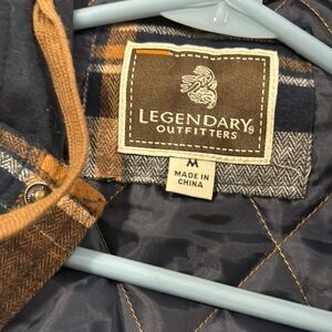 Legendary Outfitters Stylish plaid flannel jacket with a hood. Features button closures and chest pockets. Perfect for layering.size M
