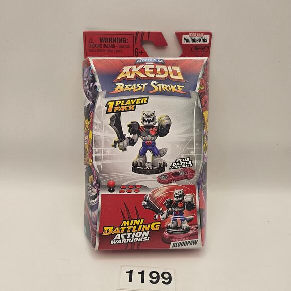 Get ready to battle with the Legends of Akedo Beast Strike Bloodpaw Mini Battling Action Figure! This awesome toy is new in package (NIP) and ready for action. Released in 2021, it's a must-have for collectors and kids alike. Unleash the beast and dominate the arena! Perfect for hours of fun and imaginative play. Add Bloodpaw to your Akedo collection today and let the battles begin!
