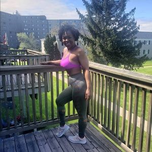 FITTED LEGGINGS WITH VIVID METALIC RAINBOW COLORS.