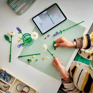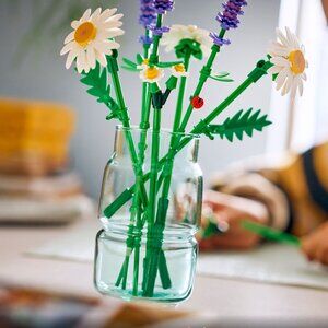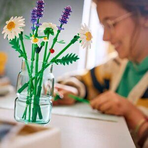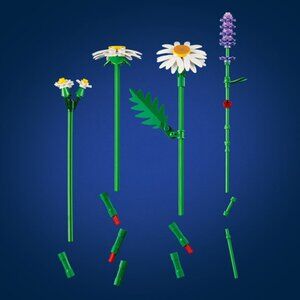 - LEGO FLOWER BOUQUET – Budding florists will have fun building 3 large daisies, 2 stems of small daisies, 3 calming lavenders and vibrant green stems