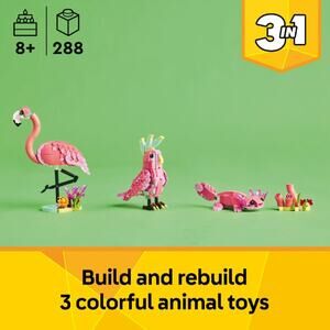 3 ANIMALS IN ONE BOX– The LEGO Creator 3 in 1 Wild Animals: Pink Flamingo toy lets kids ages 8 and up build and rebuild 3 different animal figures with the same bricks