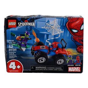 Bring the action of Spider-Man into your home with the LEGO 76133 Spider-Man Car Chase set! This fun 52-piece building toy includes Spider-Man and Green Goblin figures, perfect for imaginative play and LEGO collection.