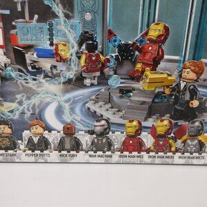 Iconic Minifigures: Includes popular minifigures such as Tony Stark, Pepper Potts, Nick Fury, War Machine, and Whiplash.