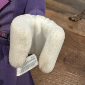 This plush has some surface stains (see photo of face) and pilling / discoloration. Please see photos for details. I don't see any rips or holes.