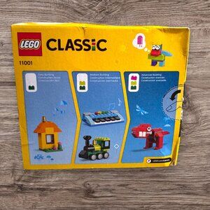 LEGO Classic set 11001 featuring 123 assorted bricks in bright primary and earth tones designed for open-ended creative play. Includes idea inspiration for easy medium and advanced builds such as house train keyboard and animal figures. Great starter set for imaginative building free play STEM learning and early construction skills. Original LEGO Classic yellow box included.